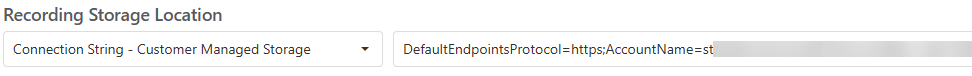 Copy the connection string from your Azure blob storage account (See screenshot below) and paste the connection string into the empty field to the right of the Recording Storage Location dropdown | Save.
